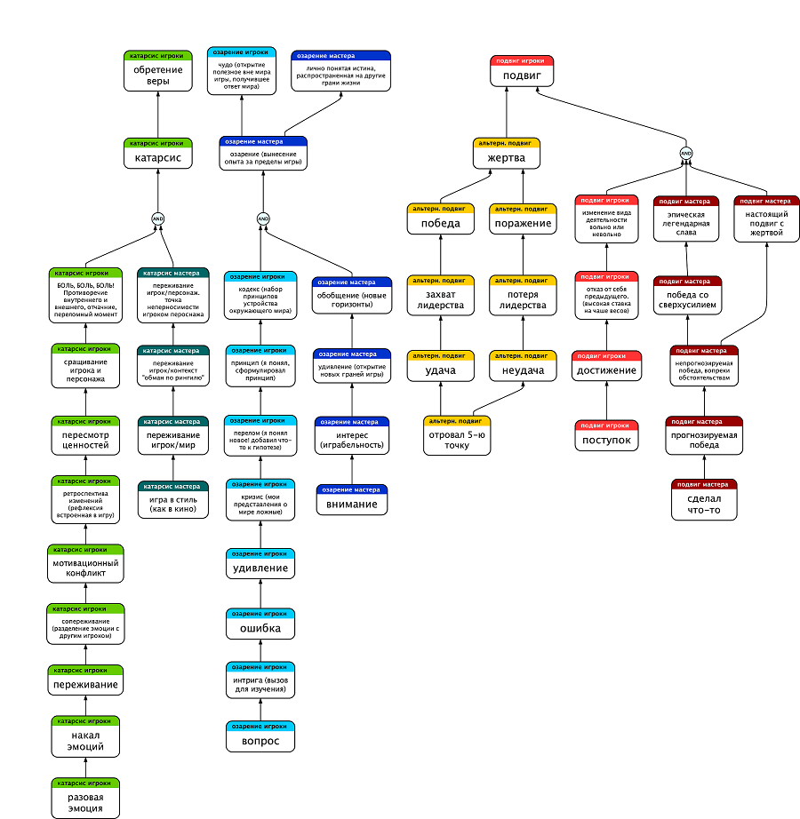 По большому счету игрок вынесет из игры свое, как бы старательно мы в нее что-то ни вкладывали. Мы очень явственно словили этот эффект на РМЛ, на рефлексии проведенных там игр. Мастер задумывал игру про Подвиг – игроки в массе своей сидят в Катарсисе и Озарении. Игра была про Катарсис – но в ней было место для Подвига, и именно тот факт, что на Подвиг силенок не хватило, и ввел игроков в катарсис уверенно и наверняка.