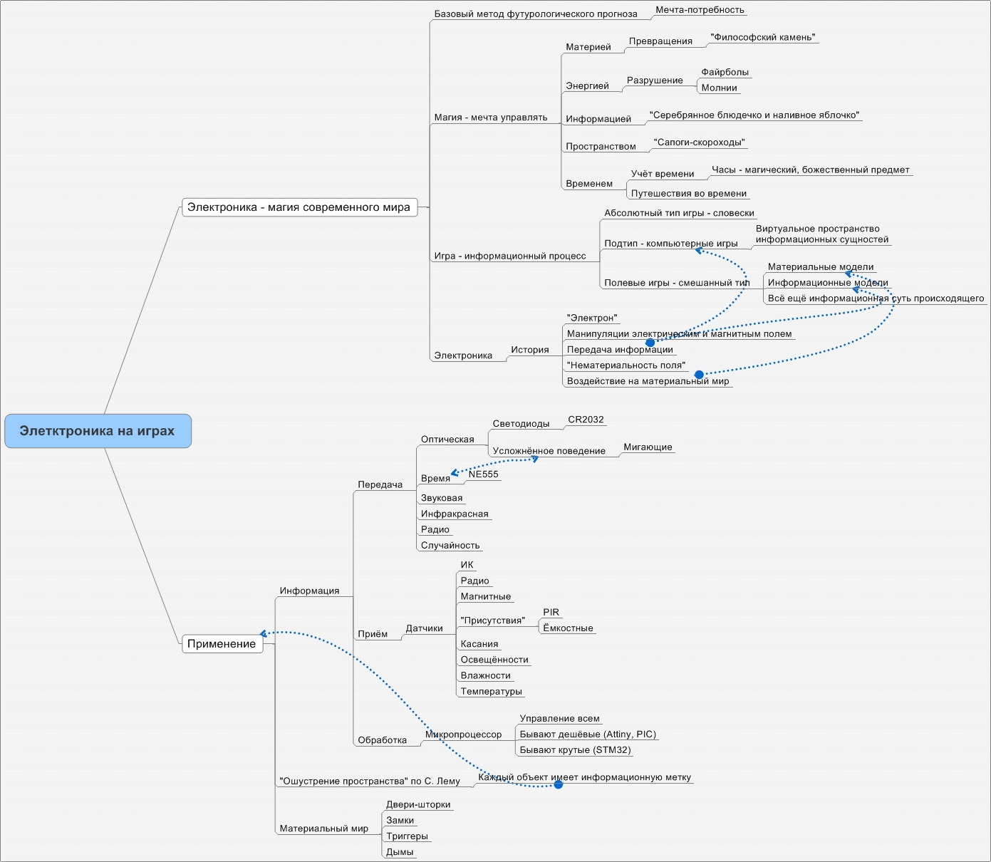 Я хочу кратко рассказать о современном состоянии электроники в применении к нашим ролевым играм, о том, с какими проблемами сталкиваются мастера, пытающиеся применять электронику на своих играх, и о том, как этих проблем избежать. В прошлом году Ксотар сделал на Комконе офигенный общий доклад есть видео о том, что электроника – это магия современного мира и о том, как она может применяться на играх. Не буду повторяться, но хочу обратить внимание на ключевой слайд этого доклада, там много интересного, изучите на досуге. Здесь же я хочу поговорить о сугубо практических аспектах.